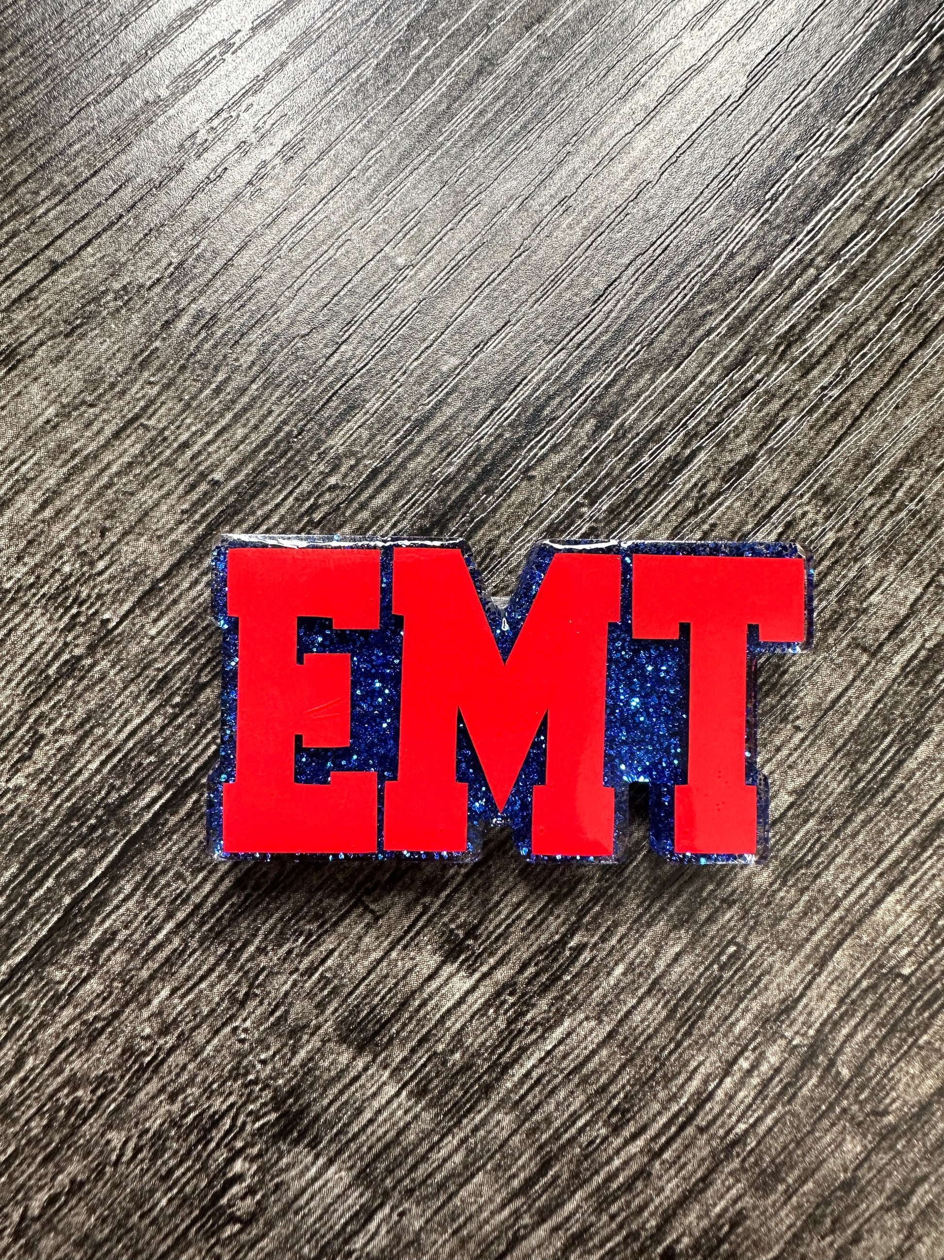 This cute badge reel is a 2 inch acrylic piece that is handmade with glitter and vinyl then sealed with resin for durability. All badge reels are alligator clips the swivel at 360 degrees.