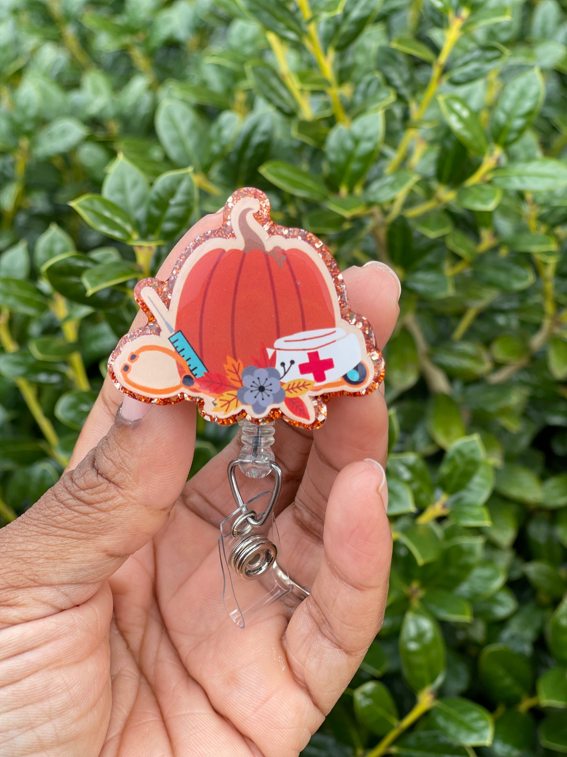 This cute badge reel is a 2 inch acrylic piece that is handmade with glitter and vinyl then sealed with resin for durability. All badge reels are alligator clips the swivel at 360 degrees.