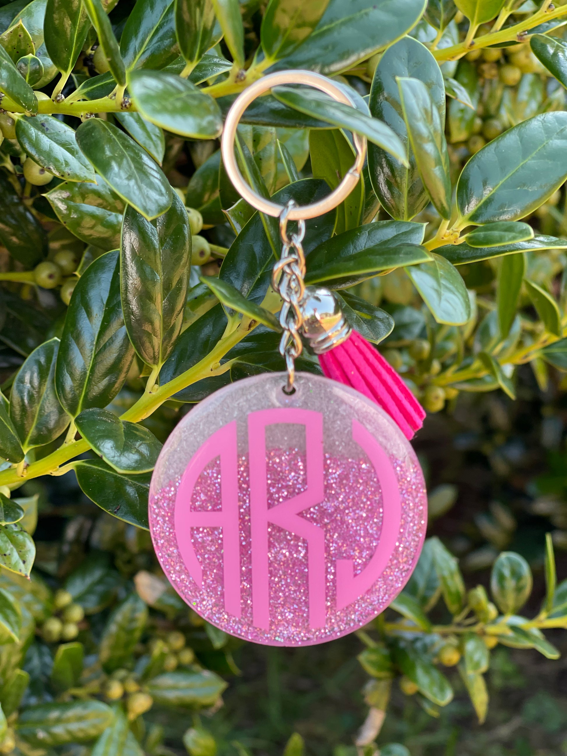 This listing is for one custom 2" round personalized keychain with a matching tassel. Keychains are made from acrylic with permanent vinyl and uv resin to seal.