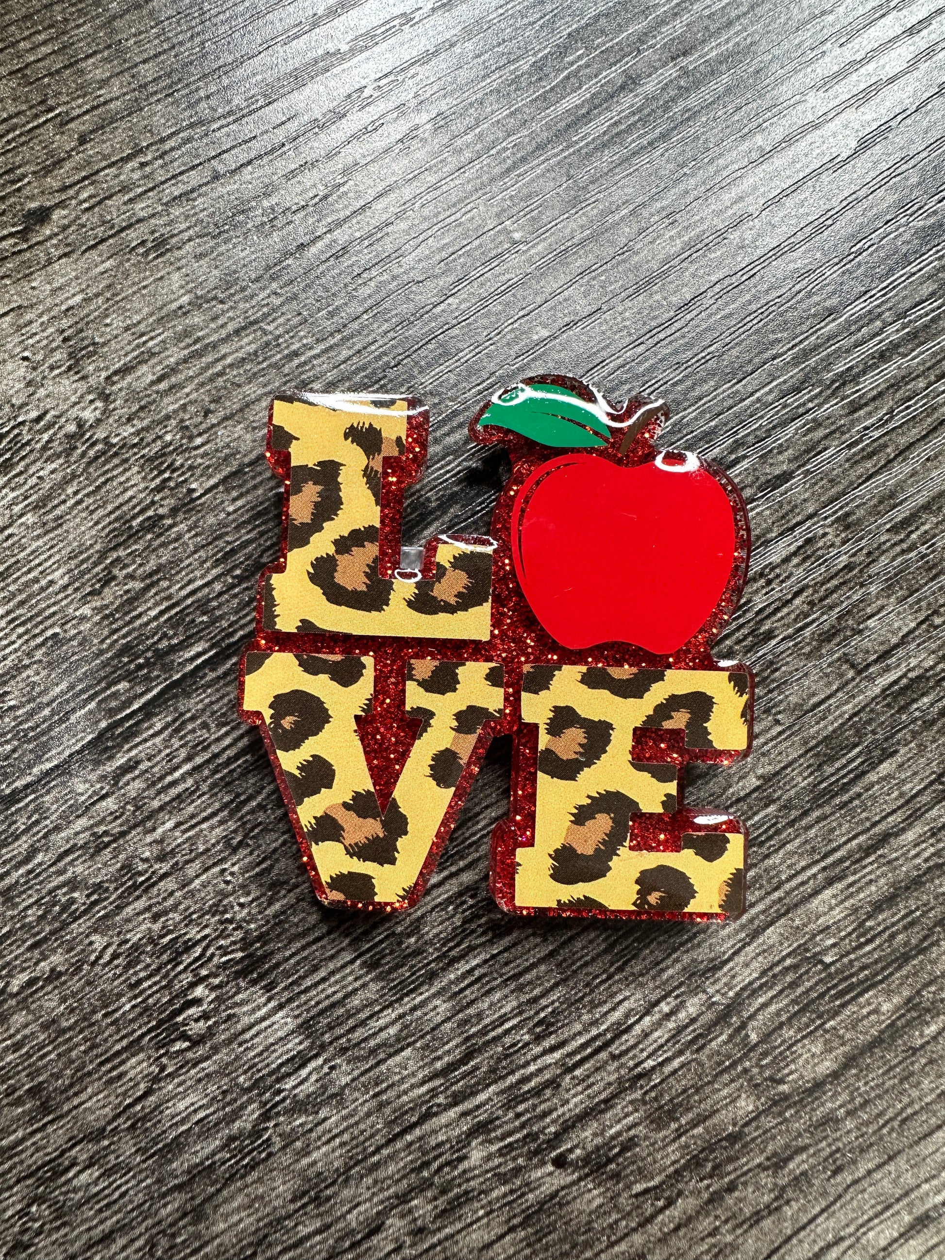 This cute badge reel is a 2 inch acrylic piece that is handmade with glitter and vinyl then sealed with resin for durability. All badge reels are alligator clips the swivel at 360 degrees.