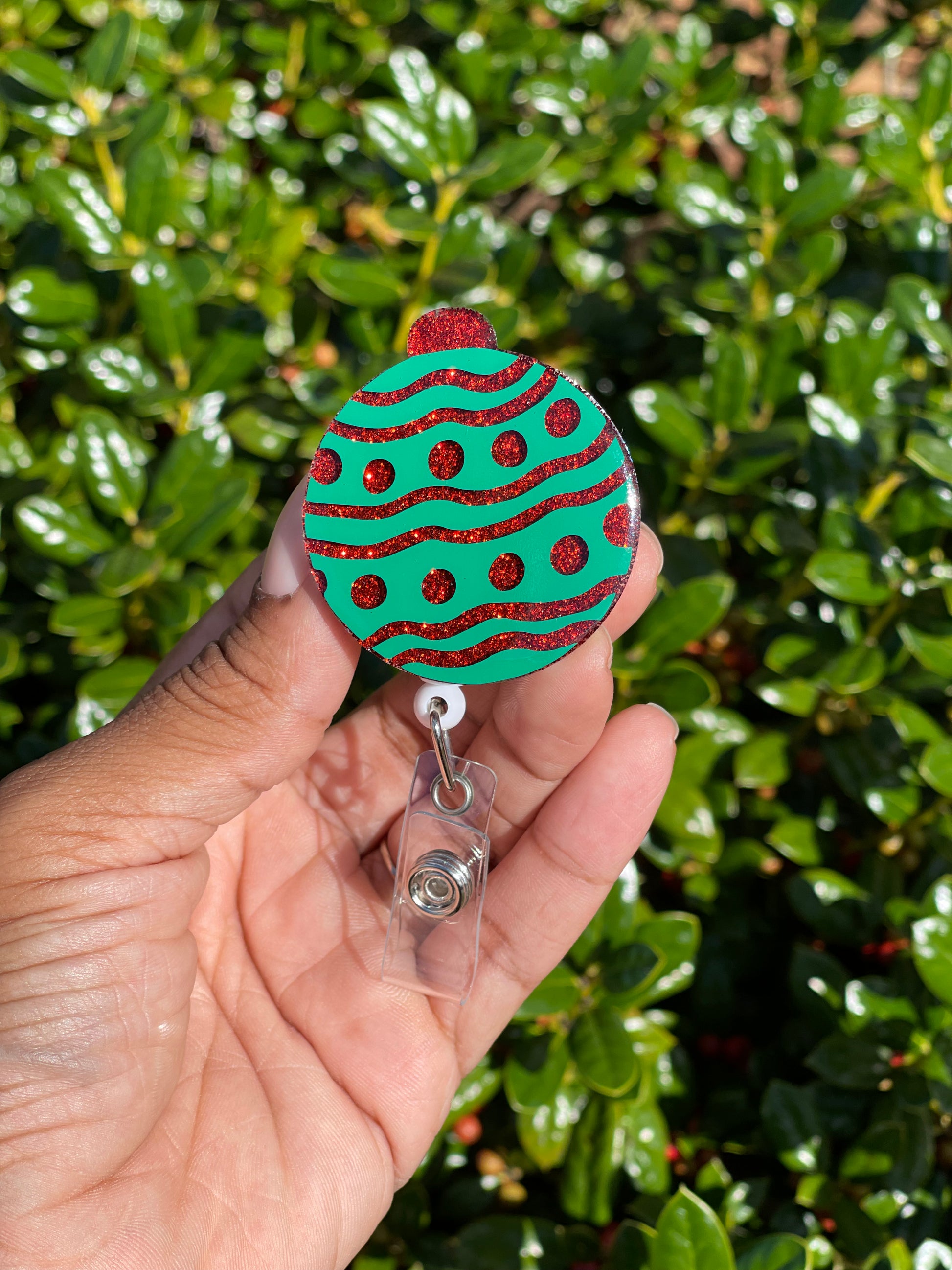 This cute badge reel is a 2 inch acrylic piece that is handmade with glitter and vinyl then sealed with resin for durability. All badge reels are alligator clips the swivel at 360 degrees.