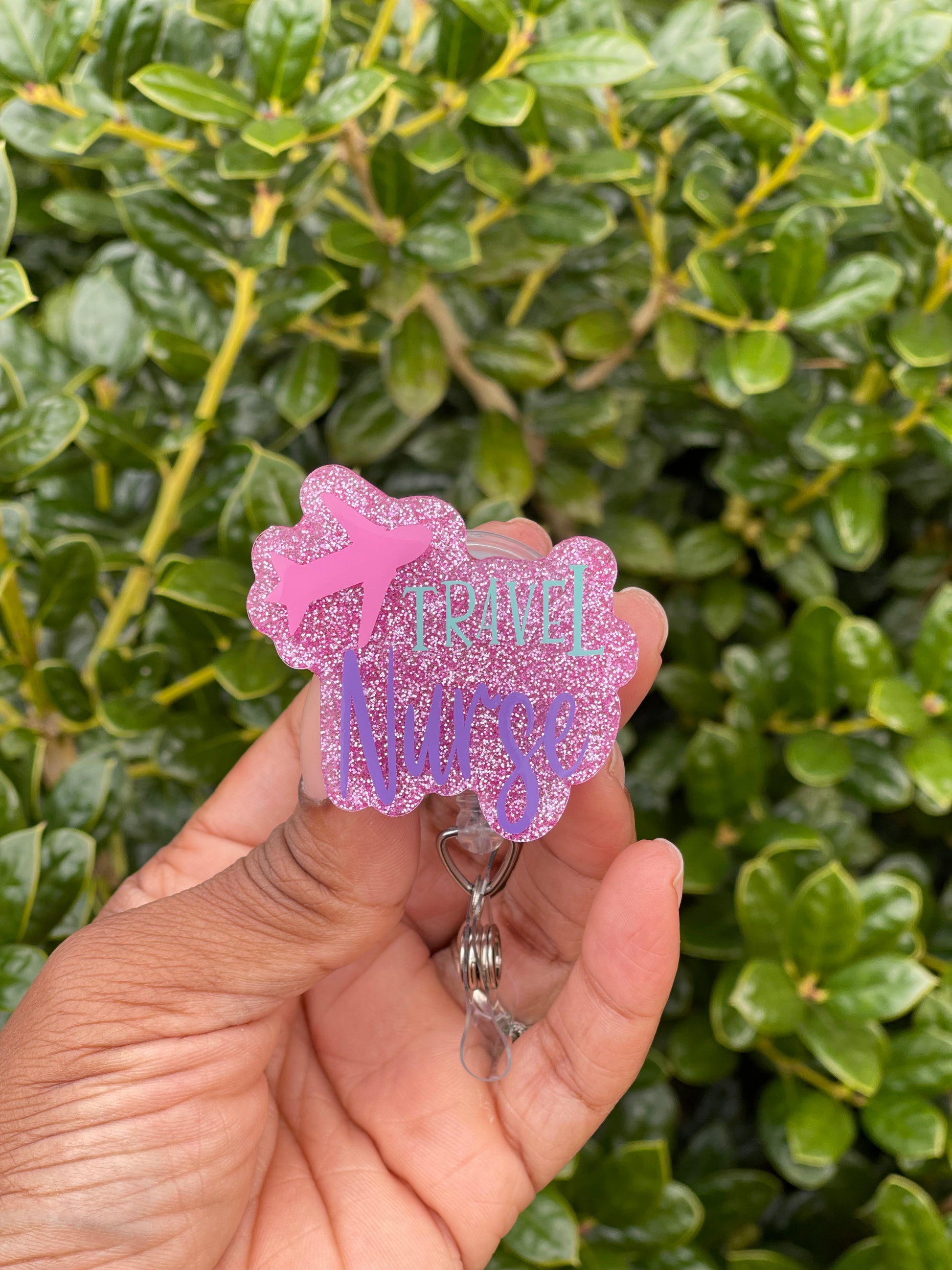 This cute badge reel is a 2 inch acrylic piece that is handmade with glitter and vinyl then sealed with resin for durability. All badge reels are alligator clips the swivel at 360 degrees.